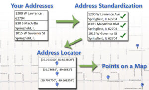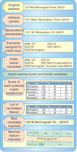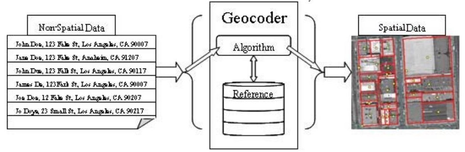 (3) The reference data, algorithms and operations used to convert the input location descriptions to coordinates is called a geocoder or a locator (ArcGIS software use the term locator).